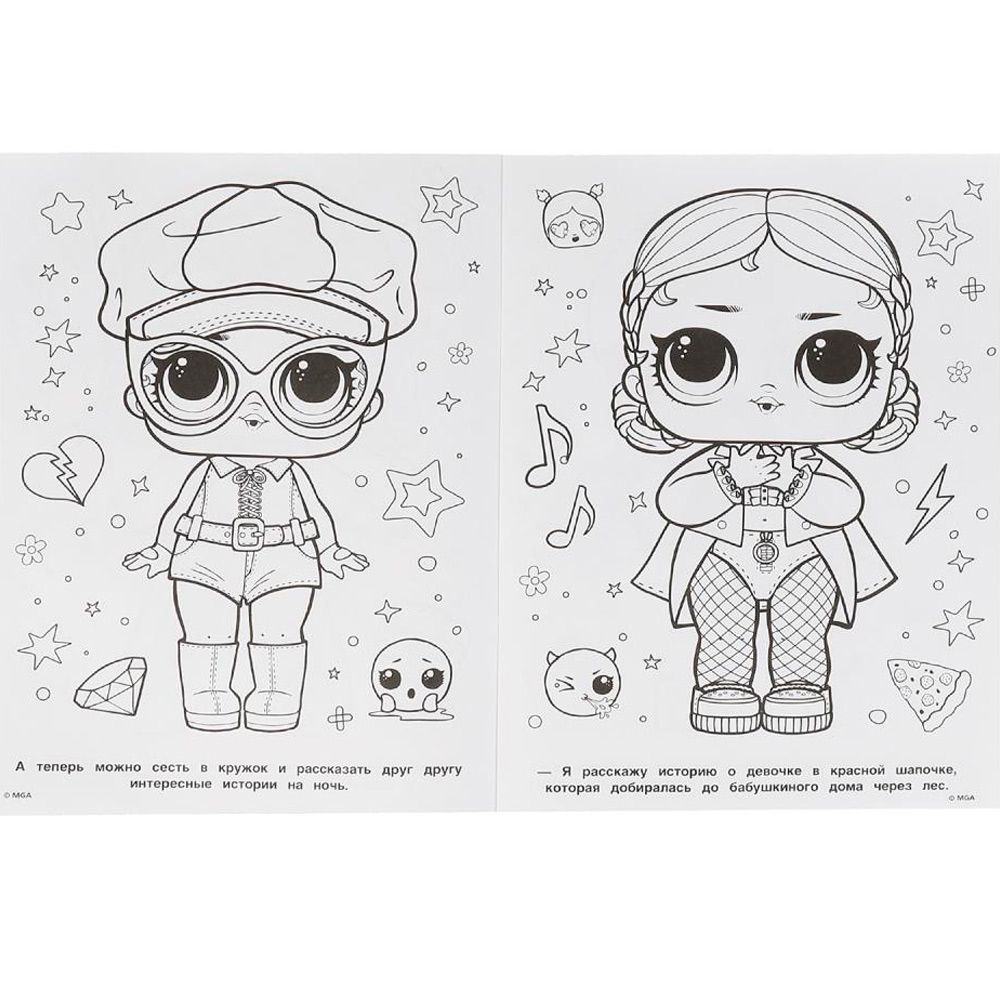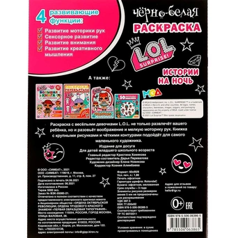 • Книжка содержит картинки для раскрашивания карандашами, фломастерами или красками.