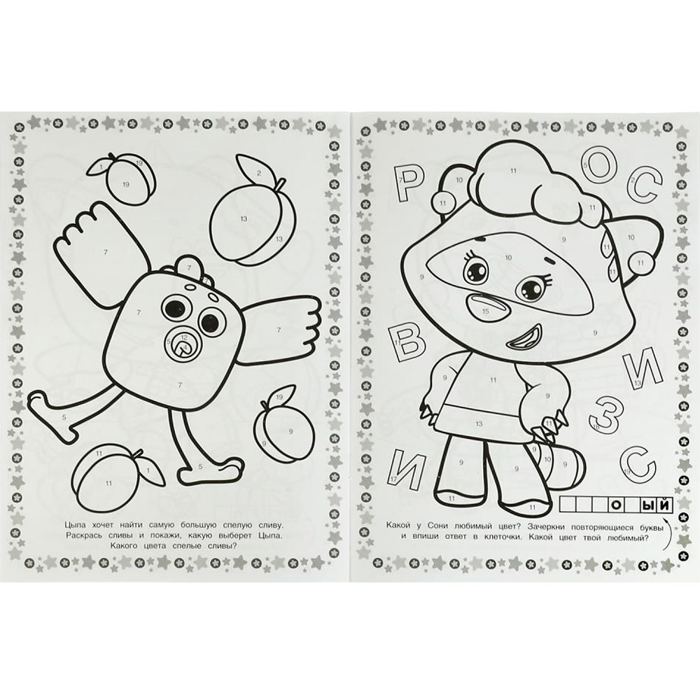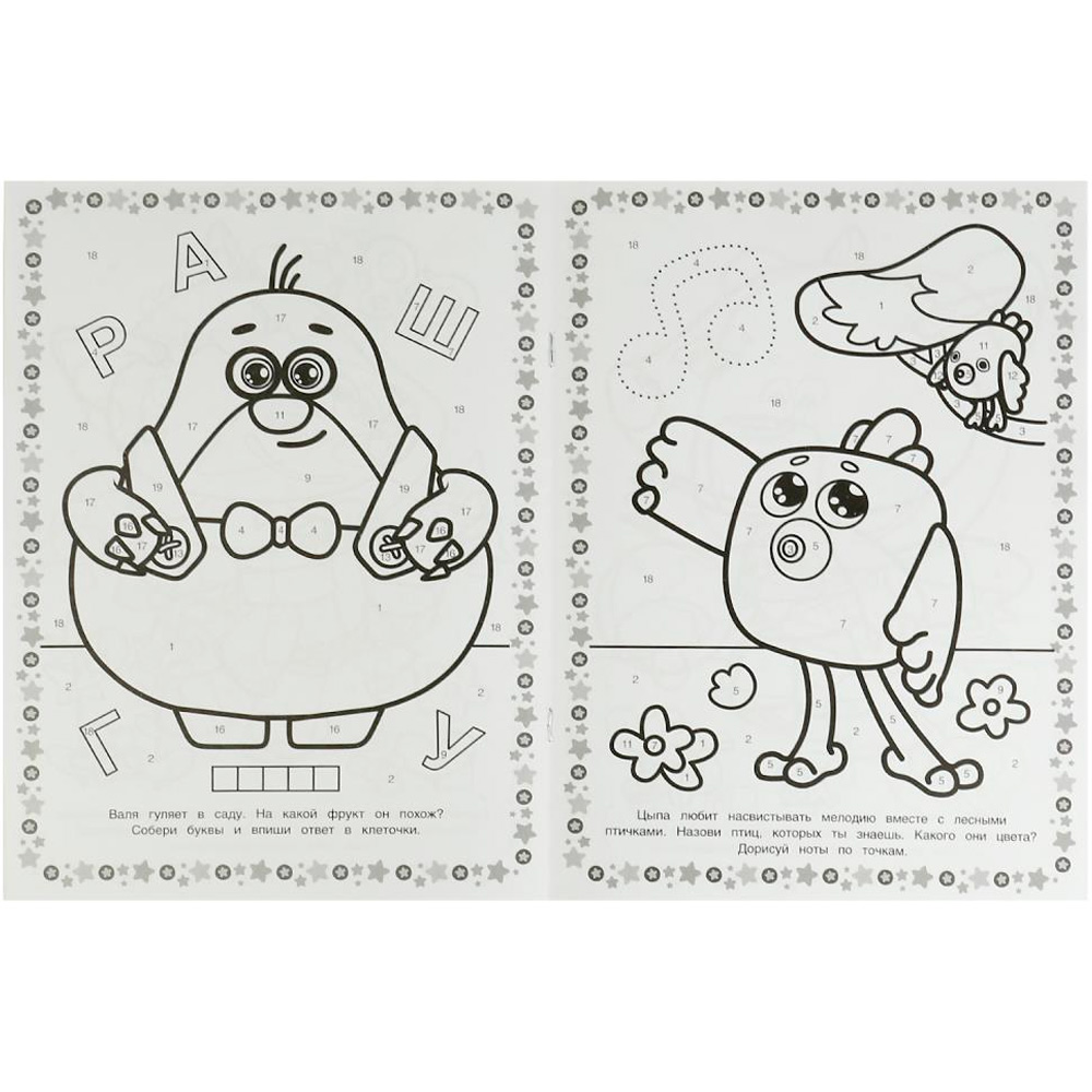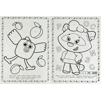 Она содержит крупные рисунки, которые несложно раскрасить.