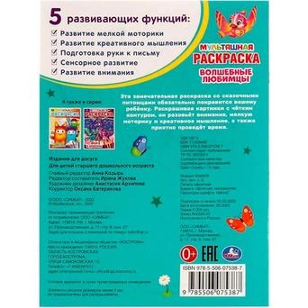 Книжка содержит картинки для раскрашивания карандашами, фломастерами или красками.