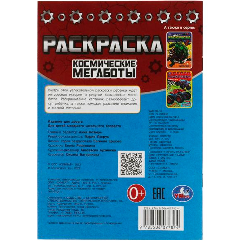 Книжка содержит картинки для раскрашивания.