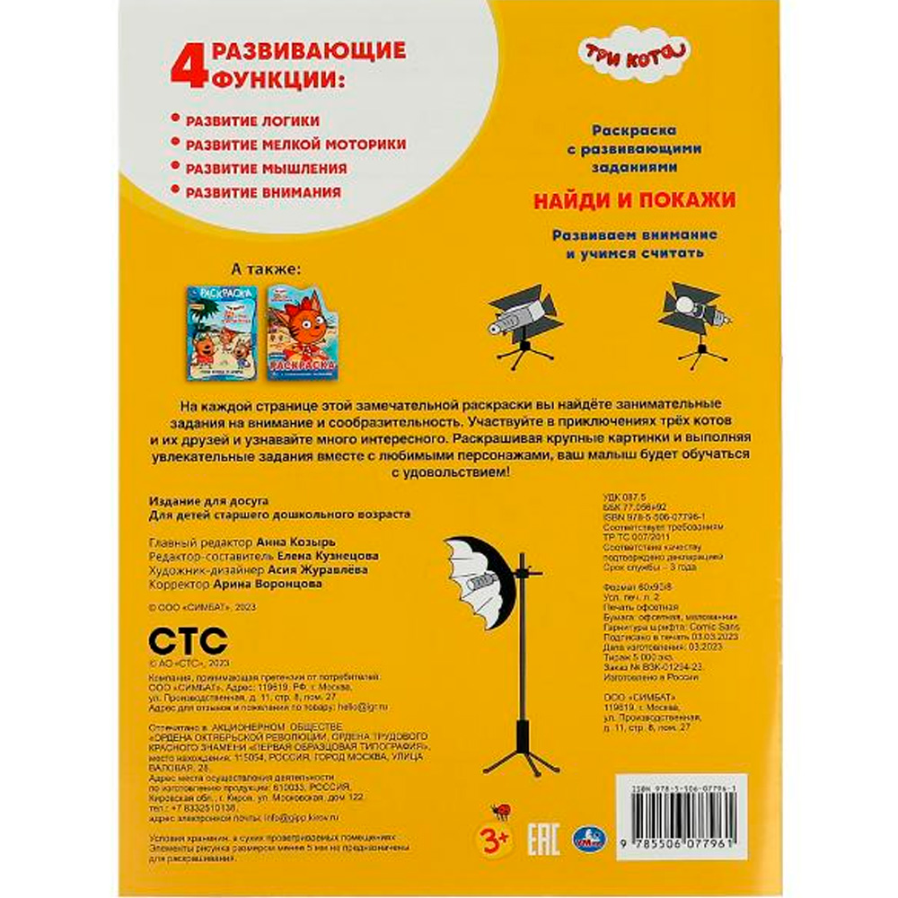 Также в издании представлены развивающие увлекательные задания на развитие внимания и умение считать.