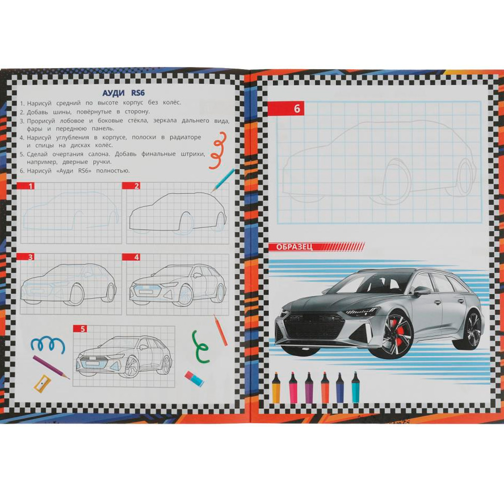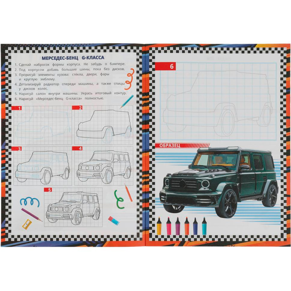 Занимательная книжка представляет собой пошаговый тренажер, чтобы научиться рисовать.