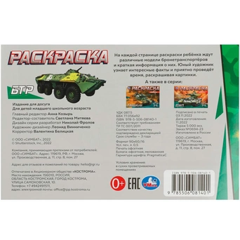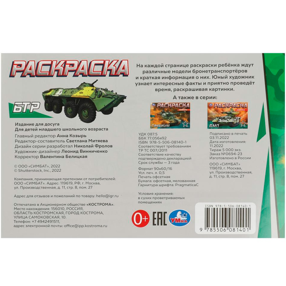 Раскраска «БТР» ТМ «УМка» непременно понравится маленькому автолюбителю.