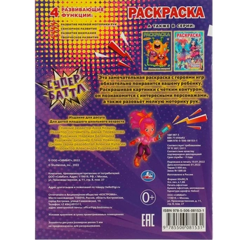 Книжка содержит картинки для раскрашивания карандашами, фломастерами или красками.