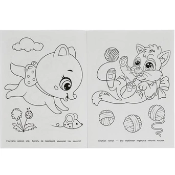 Книжка содержит картинки для раскрашивания карандашами, фломастерами или красками и короткие сюжетные тексты к рисункам.
