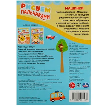 Раскраска для самых маленьких содержит картинки для раскрашивания пальчиковыми красками.