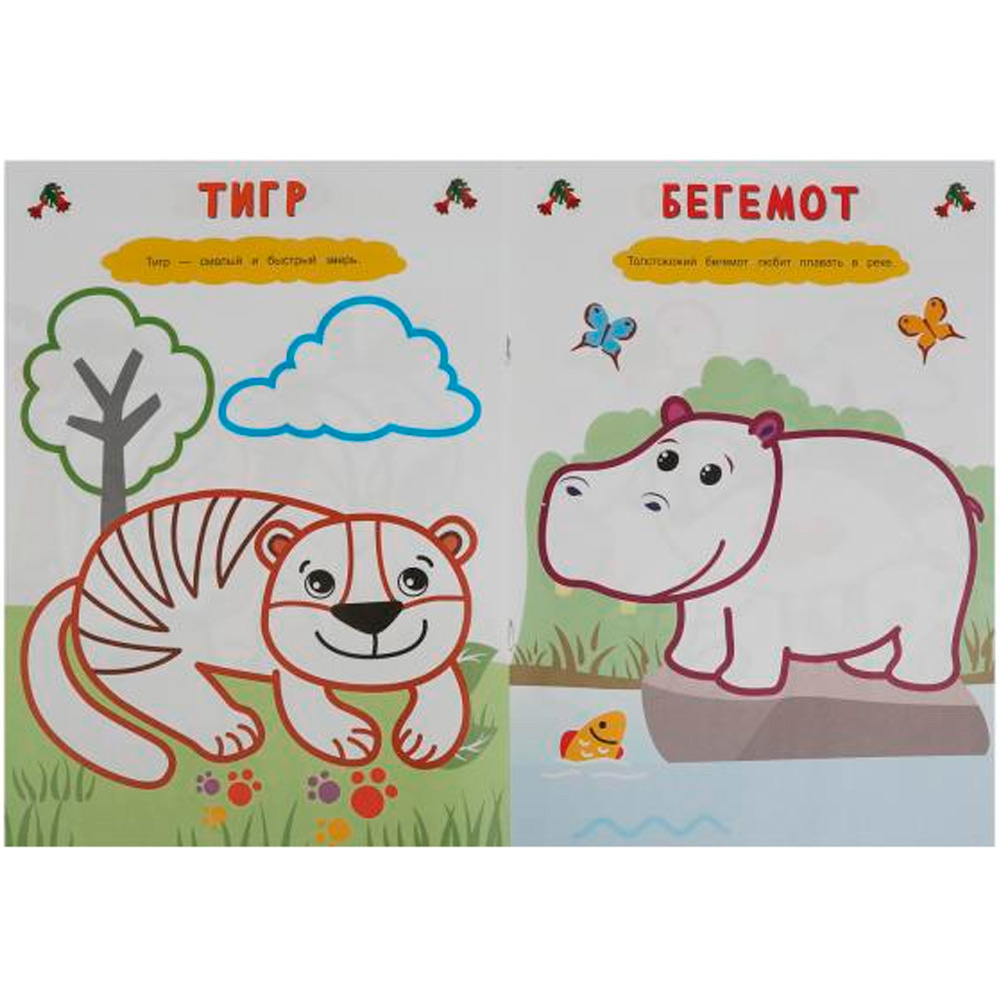 Раскраска для самых маленьких содержит картинки для раскрашивания пальчиковыми красками.