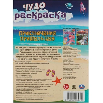 Книжка содержит картинки для раскрашивания карандашами, фломастерами или красками.