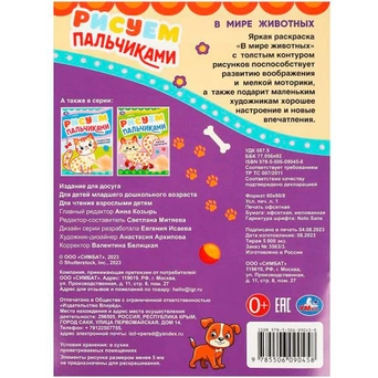 Пальчиковая раскраска «В мире животных» из серии «Рисуем пальчиками» ТМ «УМка» создана специально для самых маленьких художников.