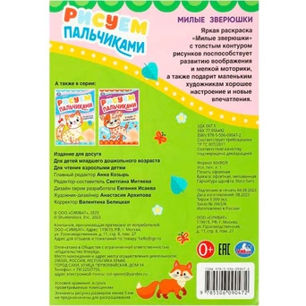Пальчиковая раскраска «Милые зверюшки» из серии «Рисуем пальчиками» ТМ «УМка» создана специально для самых маленьких художников.