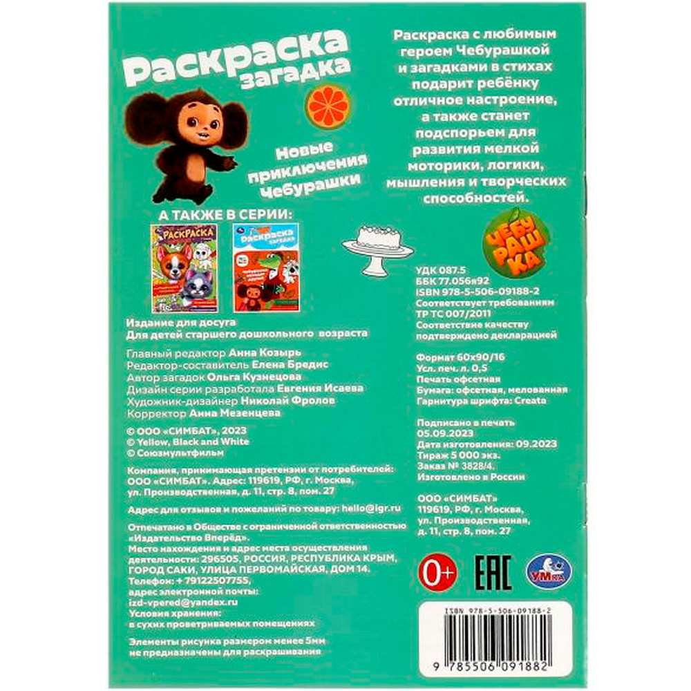 Книжка содержит картинки для раскрашивания.