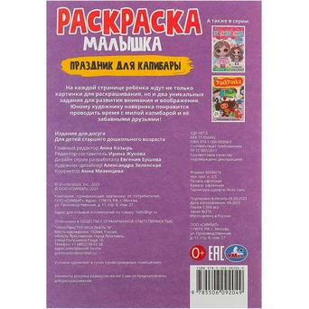 Книжка содержит картинки для раскрашивания.