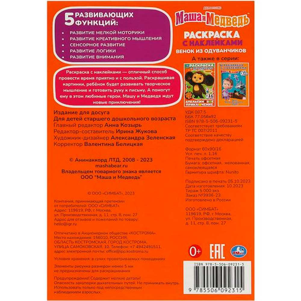 Раскраска с наклейками «Маша и Медведь. Венок из одуванчиков» ТМ «УМка» станет прекрасным подарком для детей.