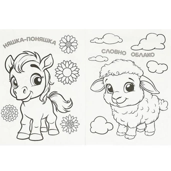 Книжка содержит картинки для раскрашивания карандашами, фломастерами или красками.