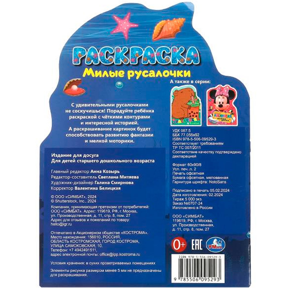 Раскраска «Милые русалочки» ТМ «УМка» - отличный развивающий подарок для детей.