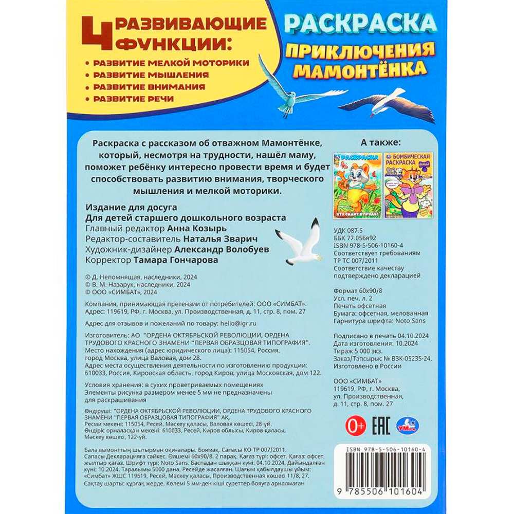 Раскраска 9785506101604 Приключения Мамонтёнка. ЭКРАН