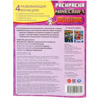 Раскраска «Аметистовая пещера. Раскраска по мотивам Майнкрафт» ТМ «УМка» - отличный подарок для юных художников.