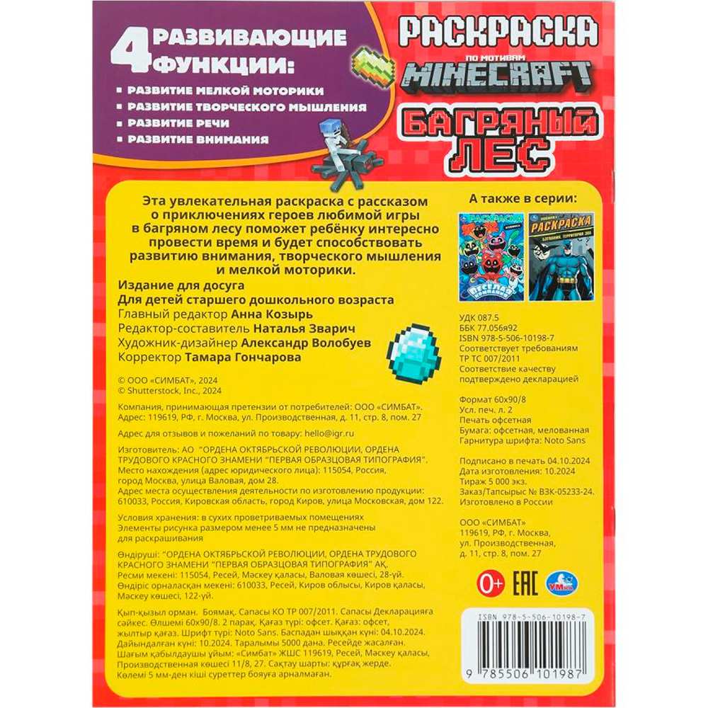 Раскраска 9785506101987 Багряный лес. По мотивам Майнкрафт
