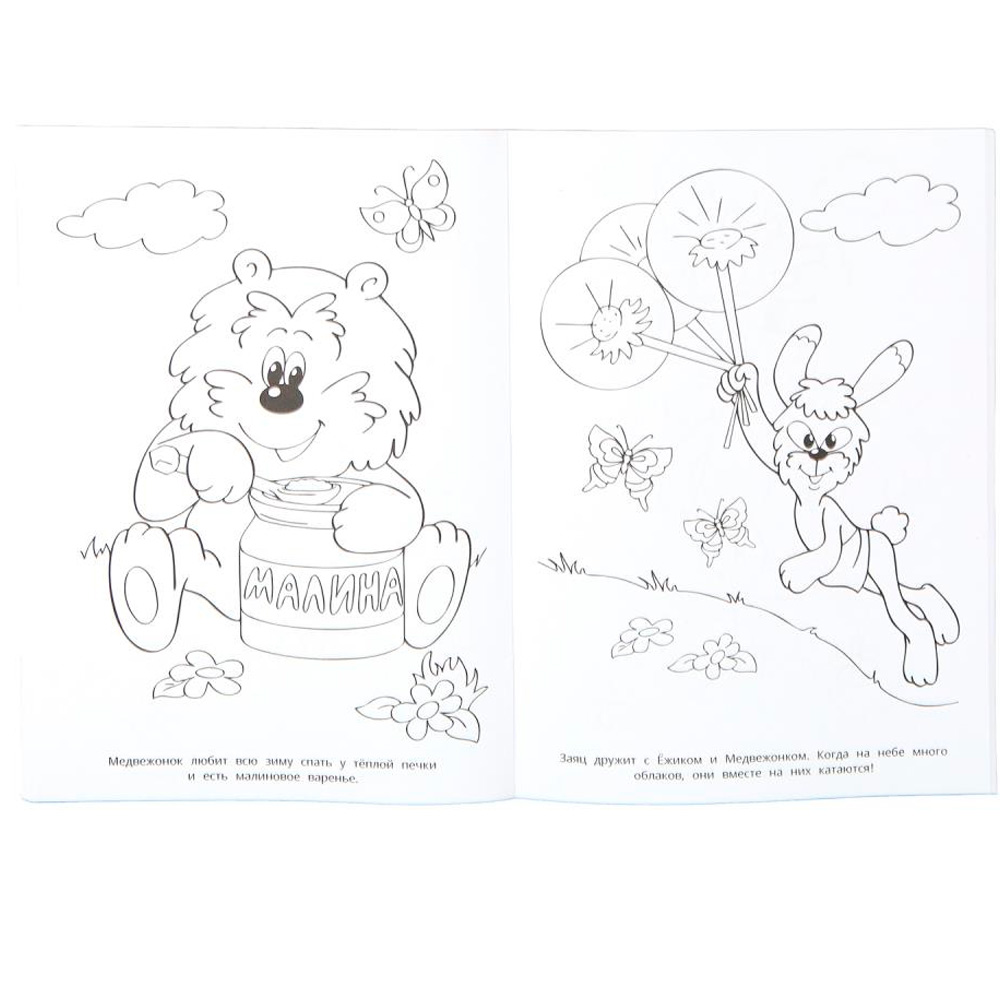 - крупные простые иллюстрации для раскрашивания;