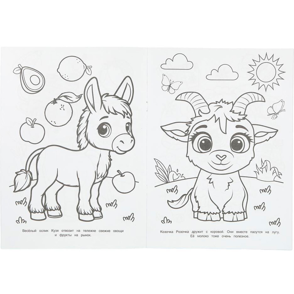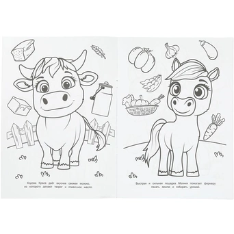 - Развитие воображения: раскрашивая, малыш может представить себя на ферме и придумать свои истории.