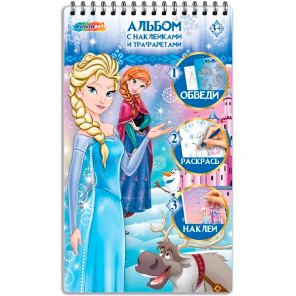 Раскраска Альбом с наклейками и трафаретами снежная принцесса MultiArt ALBUM-FR128131