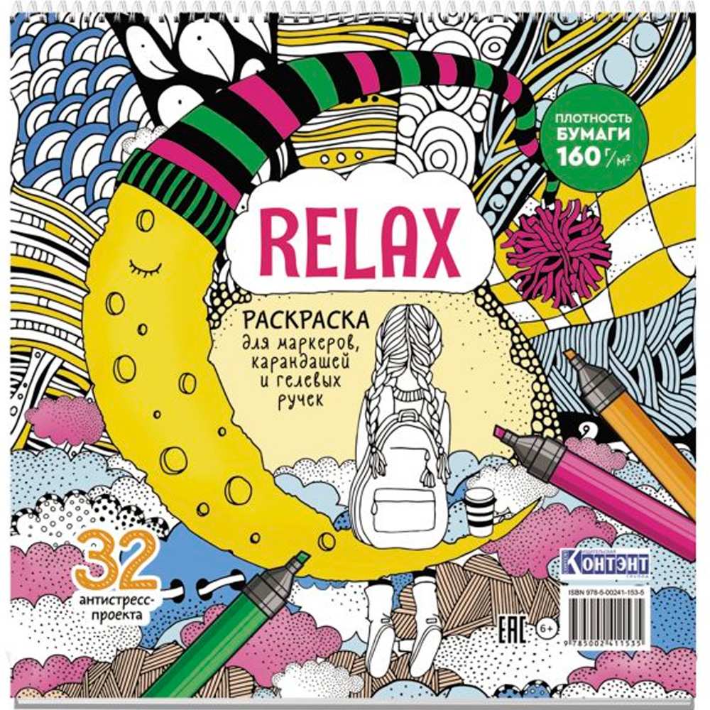Раскраска Relax для работы маркерами, цветными карандашами и гелевыми ручками – это творчество и антистресс под одной обложкой.
