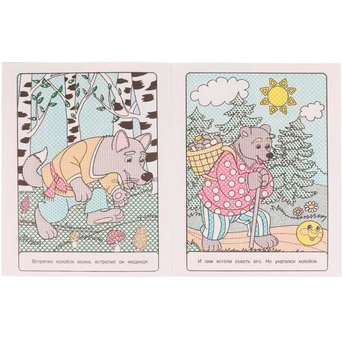 Детки с большим удовольствием и интересом раскрасят 8 веселых картинок по мотивам сказки «Колобок». Для это понадобится только кисть и вода.