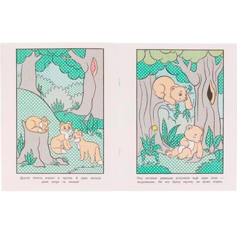 Детки с большим удовольствием раскрасят 8 веселых картинок, на которых изображены лесные зверята, и прочитает интересные истории про них. Для это понадобится только кисть и вода.