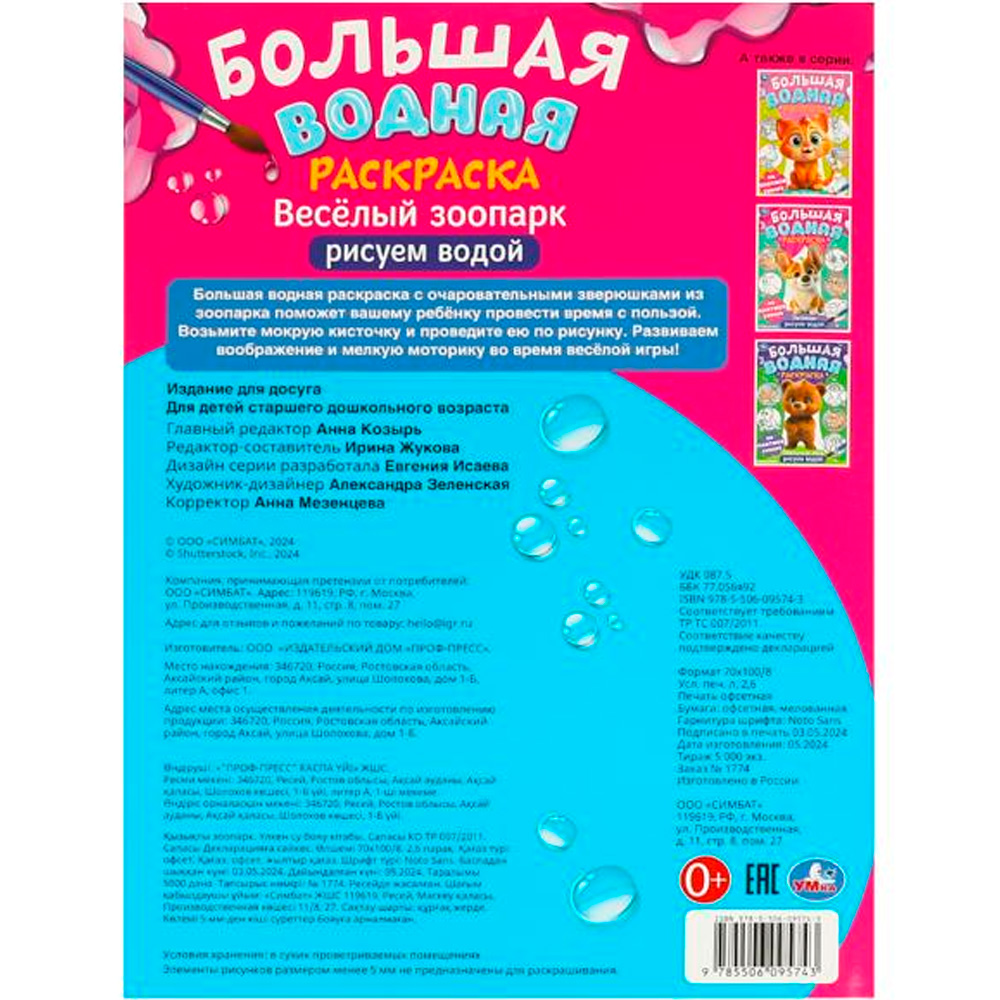 Раскрашивание — замечательный способ увлечь малыша и помочь ему развиваться. Водная раскраска станет отличным выбором для самых маленьких художников. Никаких красок и карандашей — только кисть и вода, а яркие цвета сами проявятся на страницах!