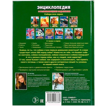 Серия красочно оформленных энциклопедий, каждый том которой посвящен отдельной теме, охватывает различные сферы науки и техники. Она станет отличным пособием для детей при подготовке докладов для уроков или поиска ответов на интересующие их вопросы. Детская энциклопедия даст юным читателям информацию о разных породах собак, населяющих нашу планету. Издание повествует об их повадках, питании и поведении, внешнем виде и органах чувств. Приведено множество интересных примеров и ответов на каверзные вопросы. Такое издание станет прекрасным подарком юным любителям узнавать новое и обогащать свой кругозор. Книга предназначена для детей старшего дошкольного возраста.