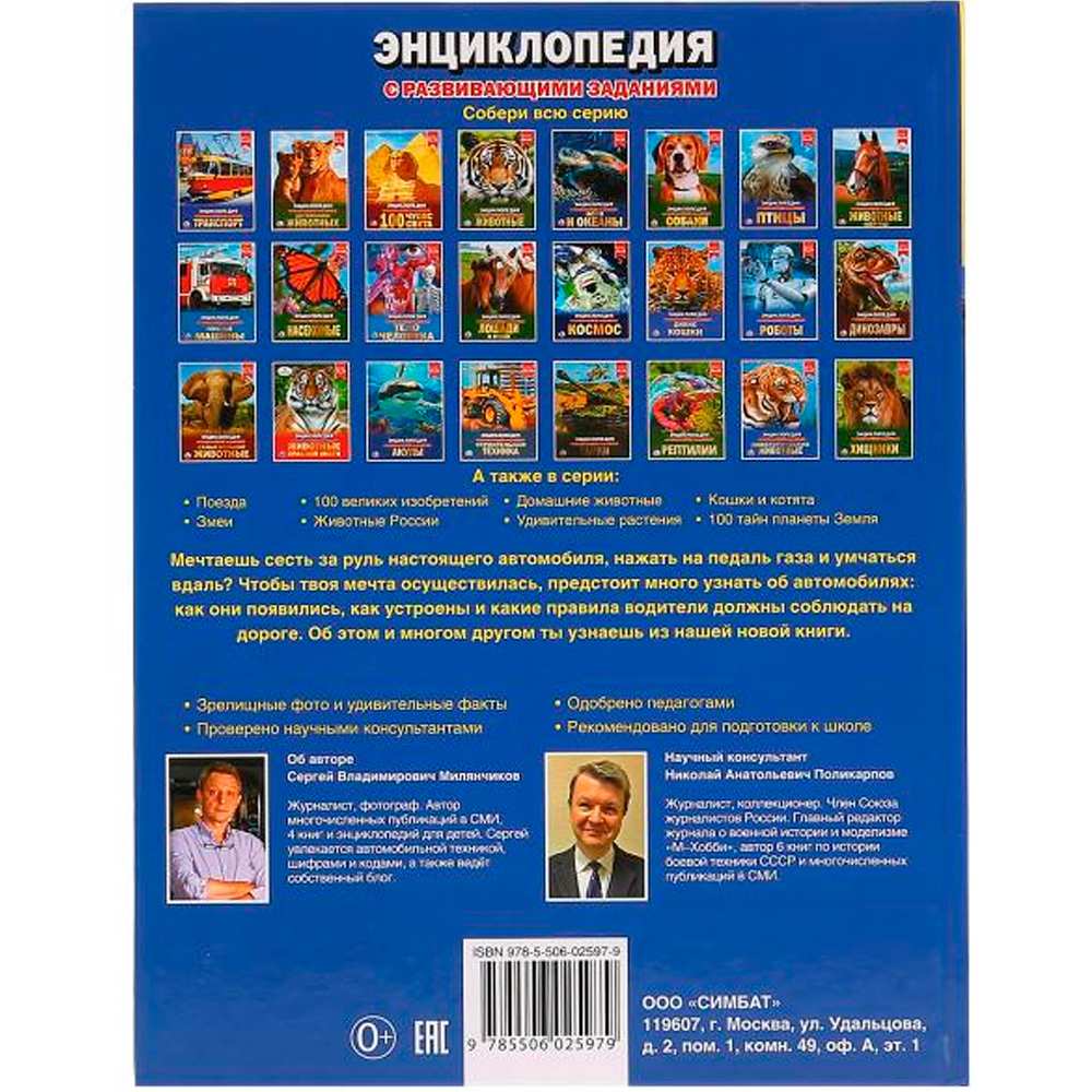 Красочная энциклопедия расскажет малышам много интересных фактов об окружающем мире. Каждая книга серии посвящена одной теме. Она расширит кругозор ребенка и обогатит словарный запас. Эта книга даст юным читателям информацию об автомобилях, их видах и особенностях, об их роли в жизни людей. Ребенок узнает, на что были похожи самые первые безлошадные повозки, как менялись автомобили с течением времени, как устроены современные машины и какими они станут в будущем. Приведено множество интересных примеров и ответов на каверзные вопросы. Такое издание станет прекрасным подарком юным любителям узнавать новое и обогащать свой кругозор.