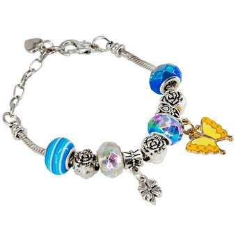 Браслет имеет стильный дизайн и будет аккуратно смотреться на ручке. Изделие украшено разноцветными шармами и оригинальными кулонами-подвесками. Застегивается на крепкий замочек. Носить браслет можно с любой одеждой.
