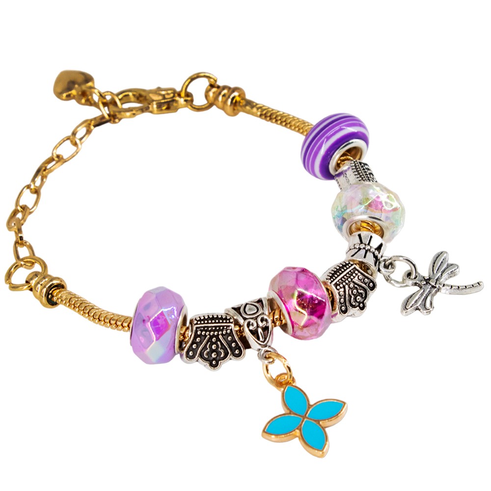 Браслет имеет стильный дизайн и будет аккуратно смотреться на ручке. Изделие украшено разноцветными шармами и оригинальными кулонами-подвесками. Застегивается на крепкий замочек. Носить браслет можно с любой одеждой.