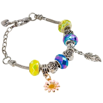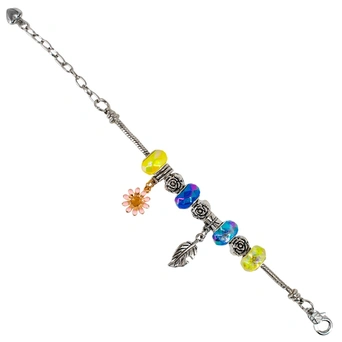 Браслет имеет стильный дизайн и будет аккуратно смотреться на ручке. Изделие украшено разноцветными шармами и оригинальными кулонами-подвесками. Застегивается на крепкий замочек. Носить браслет можно с любой одеждой.