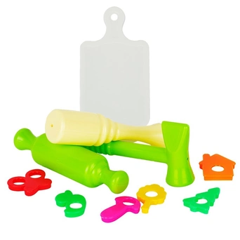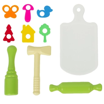Комплектация: толкушка, скалка, молоток, доска разделочная, формочкиМатериал: пластик