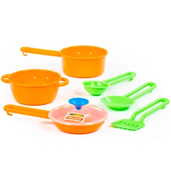 Набор кукольной посуды позволит оборудовать игровой домик и организовать его пространство по образу и подобию взрослого.