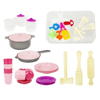 Набор "Столовый" обеспечит игрушечную кухню малыша всеми необходимыми предметами и аксессуарами для веселой игры в поваров. В комплект входят 52 предмета: чашки, тарелки, сковорода, кастрюля, скалка, толкушка, столовые приборы, сахарница, сливочник и другие аксессуары, нужные в приготовлении пищи и сервировке стола. Играя с таким комплектом, ребенок отлично проведет время один или в компании друзей, изучит основные правила столового этикета, познакомится с назначением различных приборов, потренирует фантазию и мелкую моторику. Цвета представлены в ассортименте.