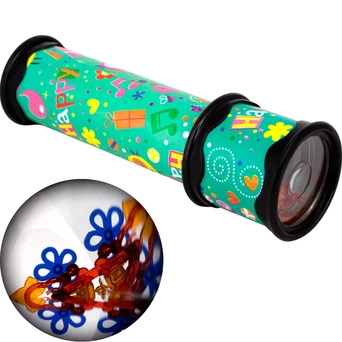 Детский калейдоскоп имеет яркий привлекательный дизайн с милыми героями.