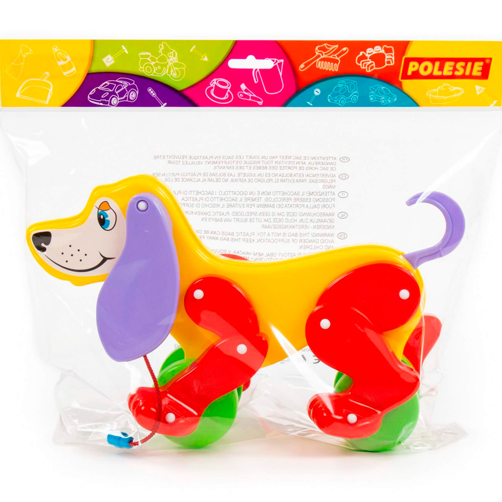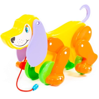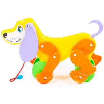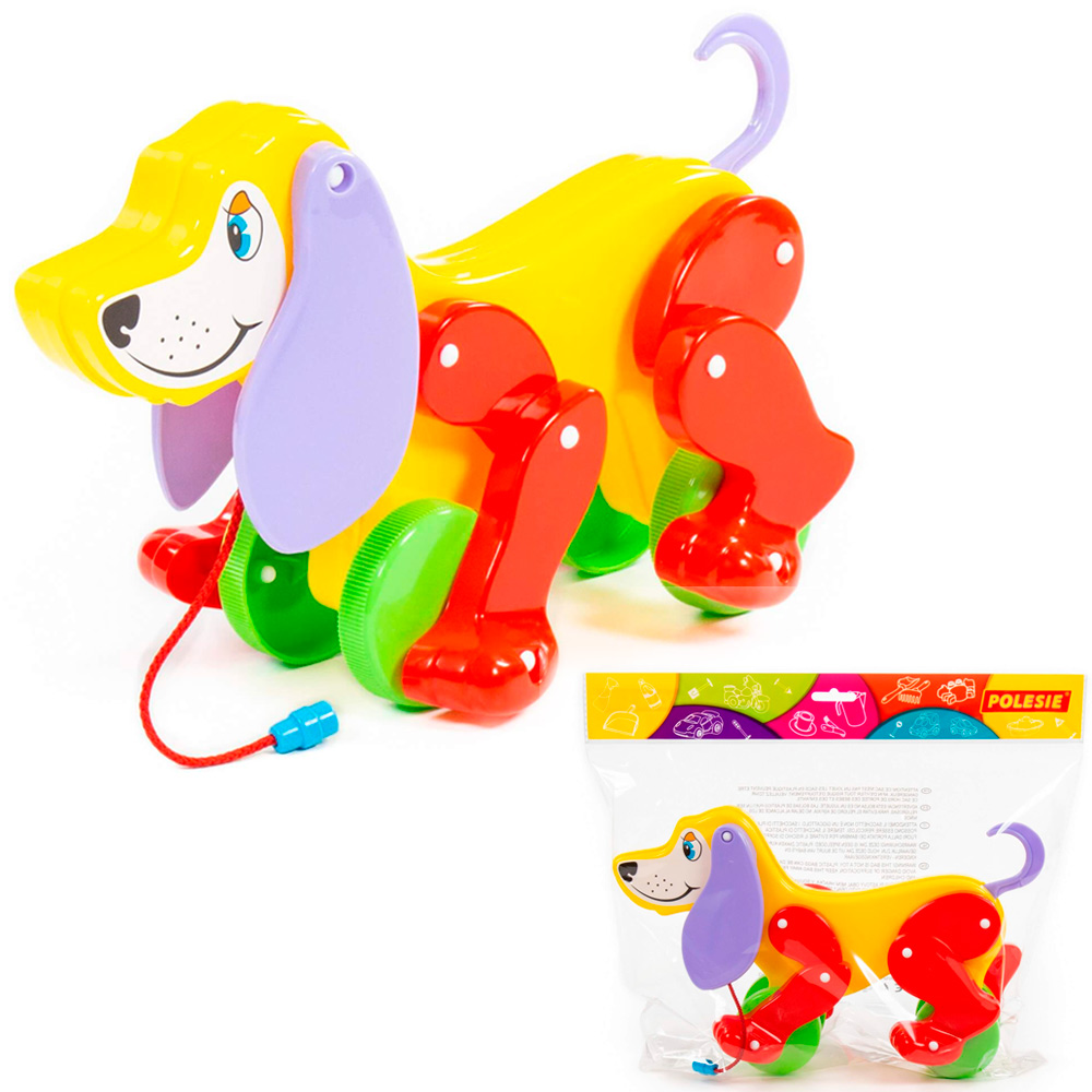 Яркая красочная каталка в виде забавной собачки - замечательный подарок малышам. Пёсик не простой, а функциональный. Его можно катать за веревочку, а при движении он будет шевелить лапками и вилять хвостиком. Он станет прекрасным подарком малышу и надолго увлечет его. Разноцветные элементы помогут малышу научиться различать цвета. Игрушка выполнена из прочных и качественных материалов.
