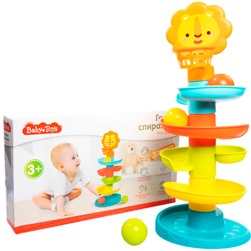 Разнообразные формы и цвета способствуют развитию зрительной координации и мелкой моторики рук ребенка, а издаваемые игрушкой звуки активно стимулируют его слух.