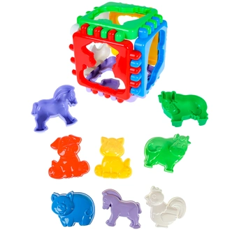 - подбирать фигурки животных к отверстиям на гранях куба, развивая логическое мышление;