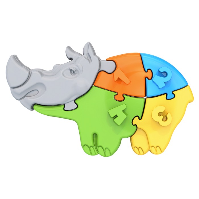 Красочная игрушка представляет собой пазл из 5 крупных элементов. На четыре из них нанесены цифры. Пазл можно собирать и разбирать, использовать в качестве счетного материала. В комплекте три головы животных, которые познакомят малышей с бегеотом, слоном и носорогом. Это замечательный подарок для малыша. Игрушки оказывают большое влияние на физическое, умственное, эмоциональное развитие малышей, способствуют развитию речи и зрительного восприятия. Разноцветная и функциональная игрушка своими яркими цветами привлечет и надолго удержит внимание малыша. Игрушки изготовлены из безопасных и гипоаллергенных материалов, прочных и износостойких. Игры помогают развить остроту зрения и слуха, цветовосприятие, тактильную чувствительность, мелкую моторику, концентрацию внимания.