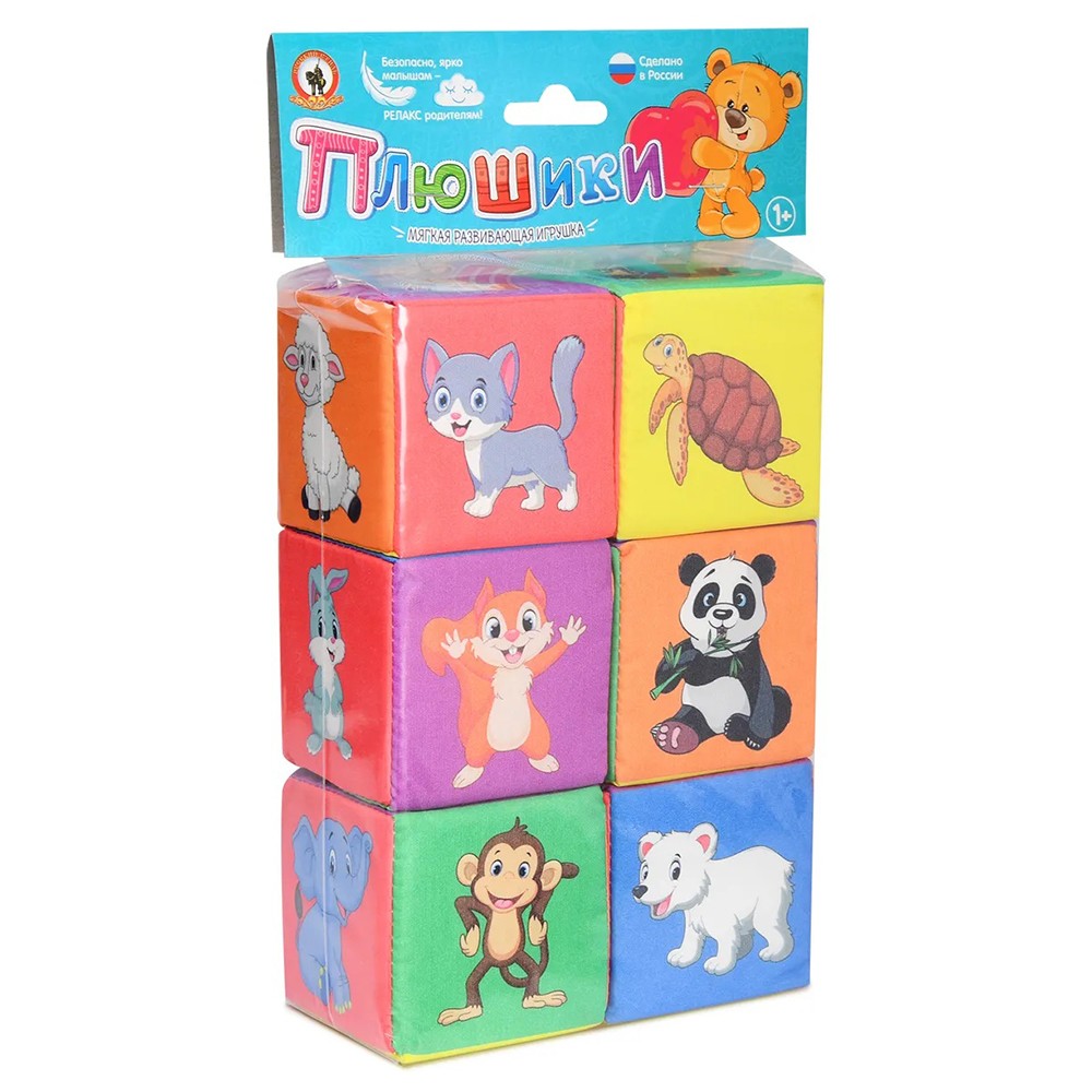 Набор из 6 мягких кубиков станет любимой игрушкой многих малышей с яркими и красочными рисунками.