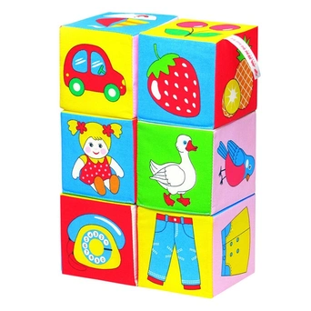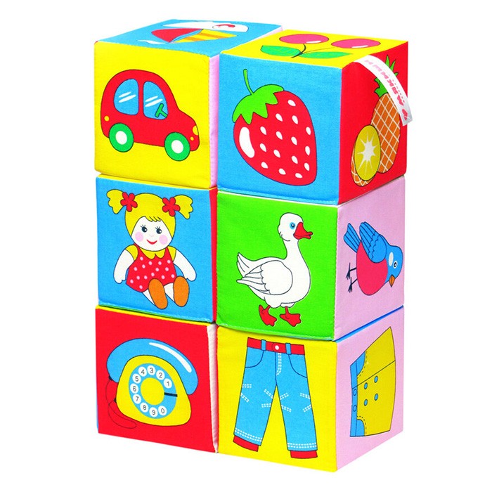 Размер упаковки- 43*20*10 смГладкие мягкие кубики, с картинками на каждой грани куба - для самых маленьких. Их можно разглядывать и обсуждать, приятно сжимать, безопасно бросать, ставить друг на друга. В наборе 6 больших кубиков (10х10 см.) с изображениями разнообразных, хорошо известных малышу предметов. Возраст: 1-3 года.