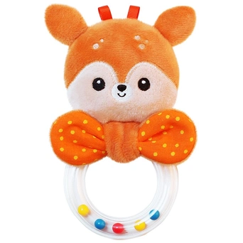 Погремушка-колечко "Оленёнок Бемби" создана для малышей с первых месяцев жизни. Игрушка представляет собой пластиковое колечко с разноцветными шариками внутри, сверху милая мордочка зверюшки с фактурной вышивкой. Такая погремушка помогает малышу знакомиться с первыми причинно-следственными связями (если потрясти колечко, то шарики внутри будут шумно перекатываться), стимулирует слуховое, визуальное и сенсорное восприятие. Кроме того, колечко помогает развивать хватательный рефлекс, силу и моторику ручек. Все элементы изделия выполнены из качественных гипоалергенных материалов, безопасных для здоровья малыша.