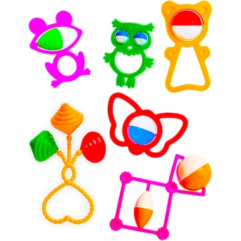 Яркий набор погремушек привлечет внимание малыша, и станет отличным подарком.