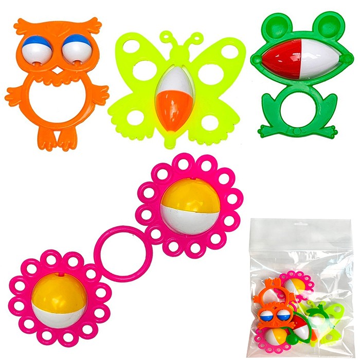 Комплектация: погремушка «Совёнок», погремушка «Лягушонок», погремушка «Бабочка», погремушка «Снежинки»