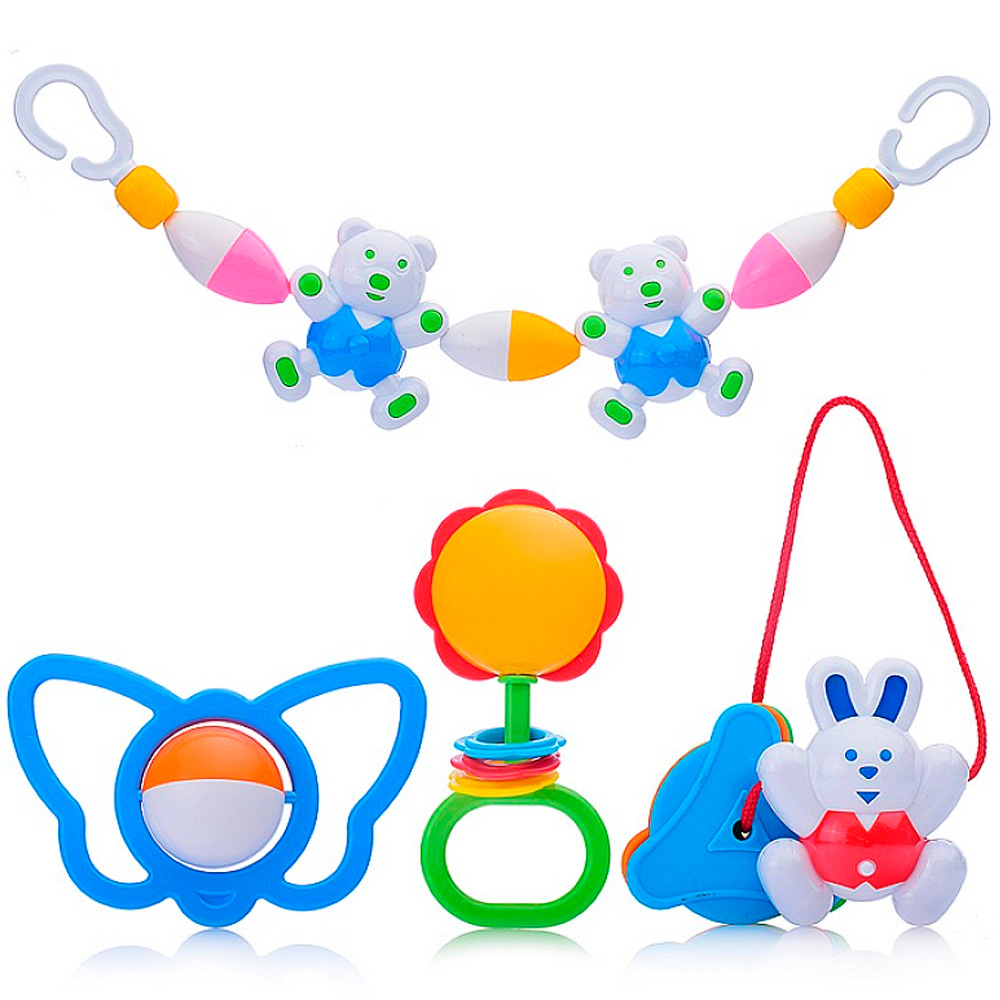 Яркий набор погремушек привлечет внимание малыша, и станет отличным подарком.