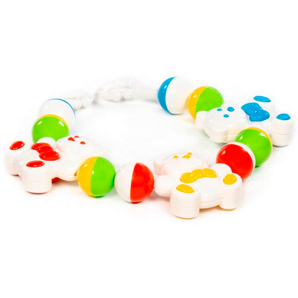 Красочная подвеска с яркими шариками и фигурками животных - это замечательный подарок для малыша. Погремушку можно прикрепить на коляску или кроватку - для этого у нее предусмотрены с обоих концов специальные крепления. Она издает звук от находящихся внутри элементов. Игрушки оказывают огромное влияние на физическое, умственное, эмоциональное развитие маленьких детей, способствуют развитию речи и зрения. Малыш, лежа в кроватке, разглядывает игрушку, концентрирует на ней внимание, начинает тянуться за погремушкой и пробовать координировать свои движения, фокусирует взгляд на ярких цветах и начинает различать их. Разноцветная и функциональная игрушка своими насыщенными цвета