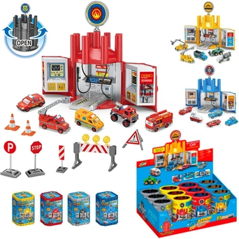 Миниатюрный гараж представляет собой пластиковую бутылочку, которая раскрывается и превращается в полноценную станцию по обслуживанию автомобилей.